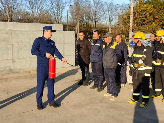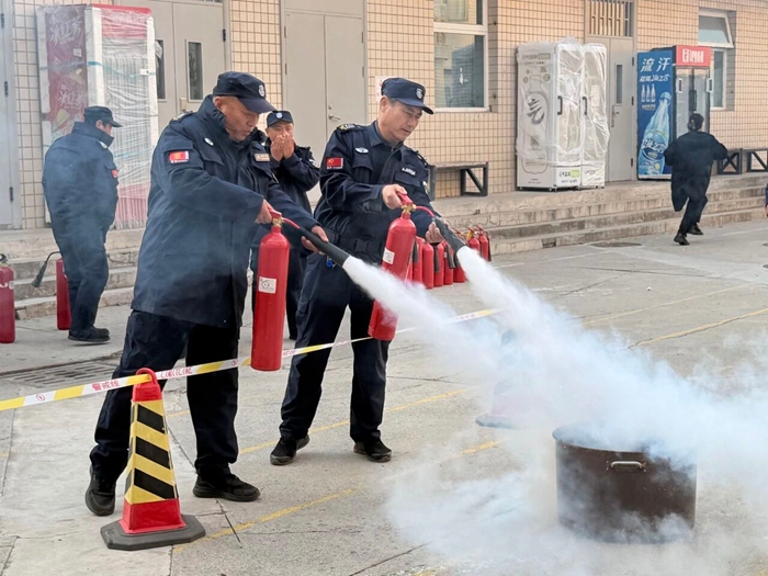 “提、拔、握、壓——對準火源根部掃射!”在演練現(xiàn)場,安全員手持滅火器,結合冬季干燥、火情易蔓延的特點,向員工講解操作要領,強調(diào)冬季滅火器維護重點。