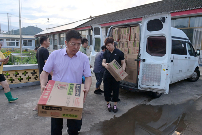 7月29日上午,集團黨委第一時間獲悉密云區(qū)太師屯鎮(zhèn)令公村受災情況后,馬上聯(lián)系駐村第一書記李東,當了解到通往村里部分路段沖毀嚴重,村民急需飲用水和食品后,北京化工集團黨委書記、董事長陳宇親自部署,對救援和慰問方案親自設計,有關集團領導、“兩辦”、財務,組織、黨群等部門緊急開展工作,選派得力人員購買物資,派出車輛,緊急調度,馳援一線。